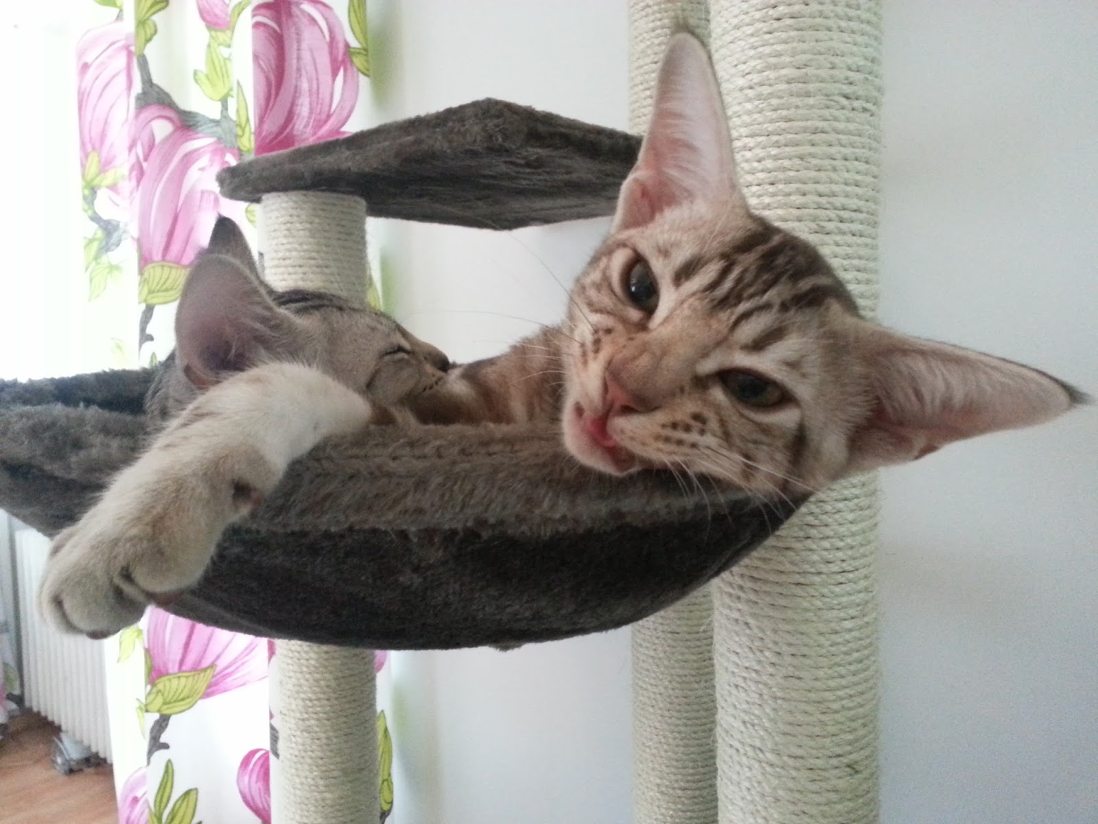 Puusti tuntuu olevan erittäin tyytyväinen elämäänsä. Puusti innostuu ja innostaa useammin leikkeihin, hän kömpii syliin useammin ja kehrää kovaäänisemmin. Tilanteessa kuin tilanteessa hän on luottavaisempi ja kierähtääkin usein selälleen nukkumaan, niin vieressä kuin sylissäkin. Siskon hän ottaa usein kainaloon ihan kirjaimellisesti :)